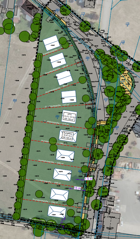 Das Wohnquartier verfügt über 10 Baugrundstücke die zur Bebauung mit unseren Town & Country Häusern gedacht sind.